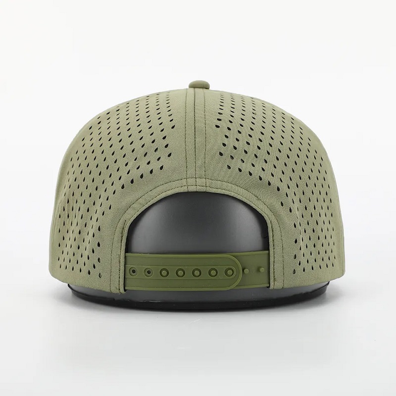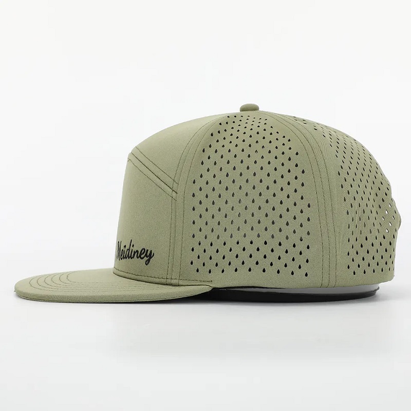 OEM Vlastní vysoce kvalitní výšivka Logo Luxus 7 Panel Snapback Cap Adult Flat Bill Snap Back Hat s laserovým řezaným otvorem